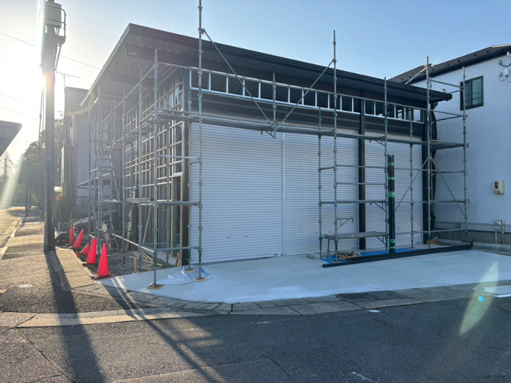 足場が組まれた状態ではありますが、シャッターも設置され、完成へと着実に近づいています。